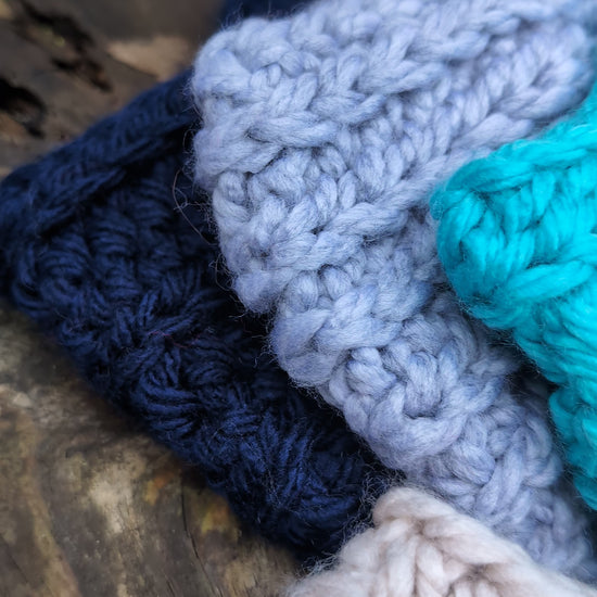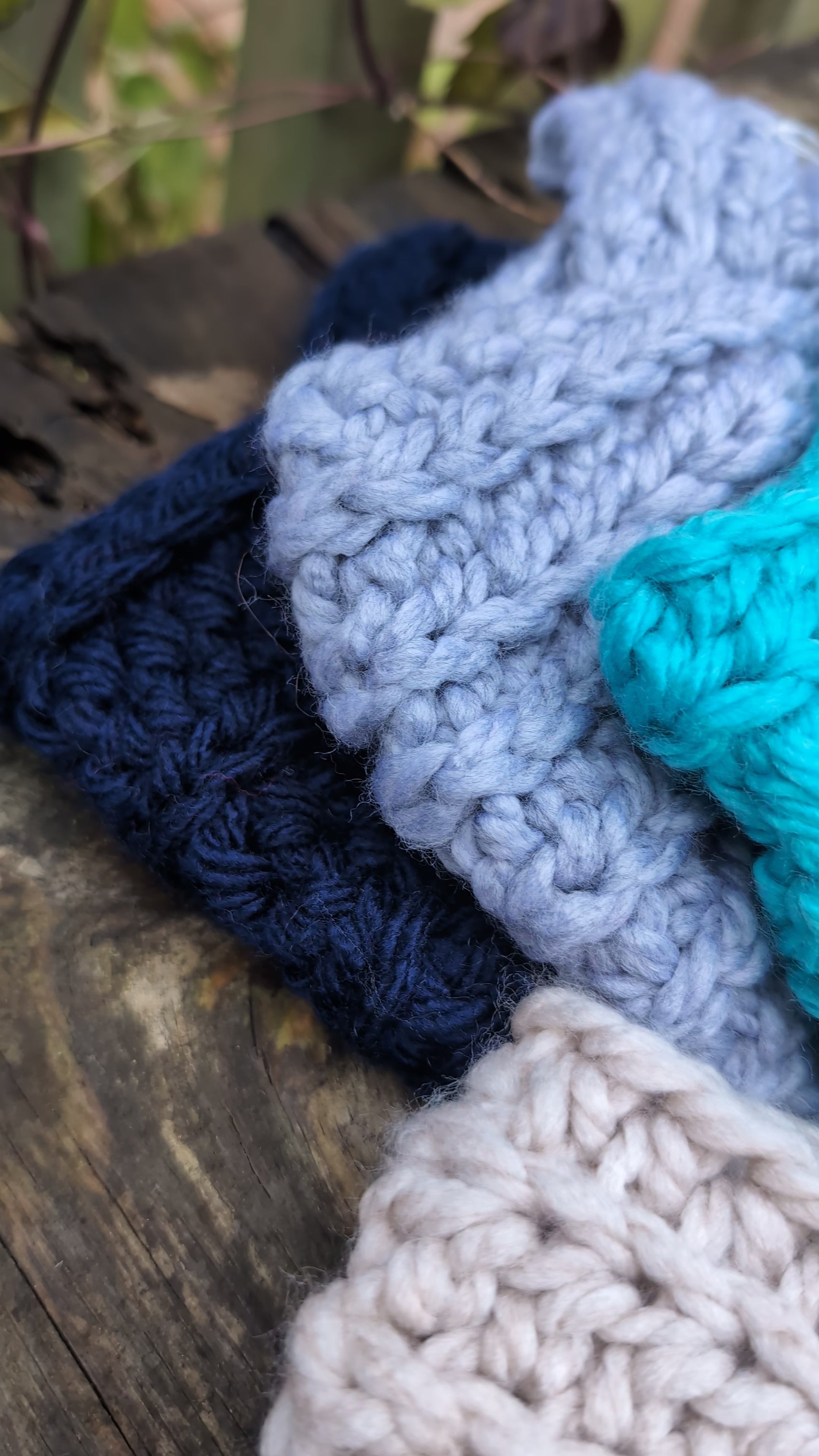 These cosy twist front headbands are both comfy and warm. Made from recycled acrylic yarn to give an extra soft and smooth feel. Unlike a hat, they are wearable with hair up or hair down and can be warm in a variety of ways.